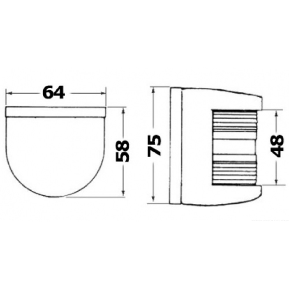 Portakal kabuğu yüzeyli polikarbon malzemeden üretilmiştir, IMCO standartlarına uygundur. Kurulumu kolay, % 100 su geçirmez; lamba soketleri ve ampul dahildir. 12 metreye kadar tekneler için tip onaylı olup RINA tip onay sertifikası mevcuttur. 12V/10W. 1 mile kadar görünürlük