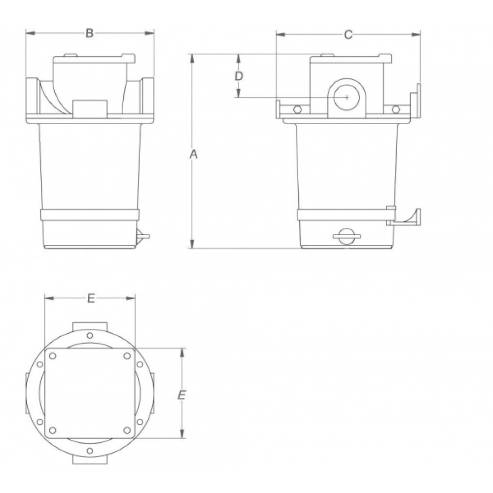 Döküm bronz, şeffaf cam, AISI 304 paslanmaz çelik filtre elemanı.