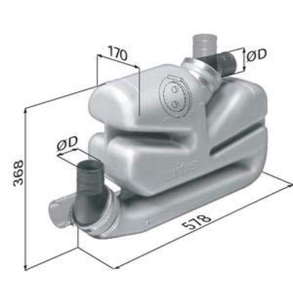 Vetus waterlock, uzun egzoz sistemleri için. Kapasite:17 L. Çek-valfli.
